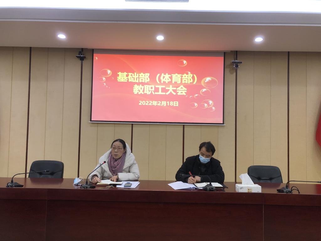 2月18日上午,基础部(体育部)召开期初工作会议,会议由基础部(体育部)主任梅霞主持,副主任黎明及全体教职工参加会议。