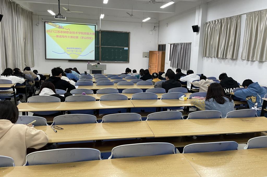 为提升我校大学生的英语实际应用能力,展现大学生的英语语言技能水平和综合职业素质,由基础部指导,英语酷吧社社团做前期宣传和报名组织工作, 2021年校级技能大赛英语写作赛项的预赛活动于11月17日分别在本校区实验楼S-B503、S-B505、茅山校区M1-B103两个赛区成功举办,全校共有133位学生积极参加了本次比赛。