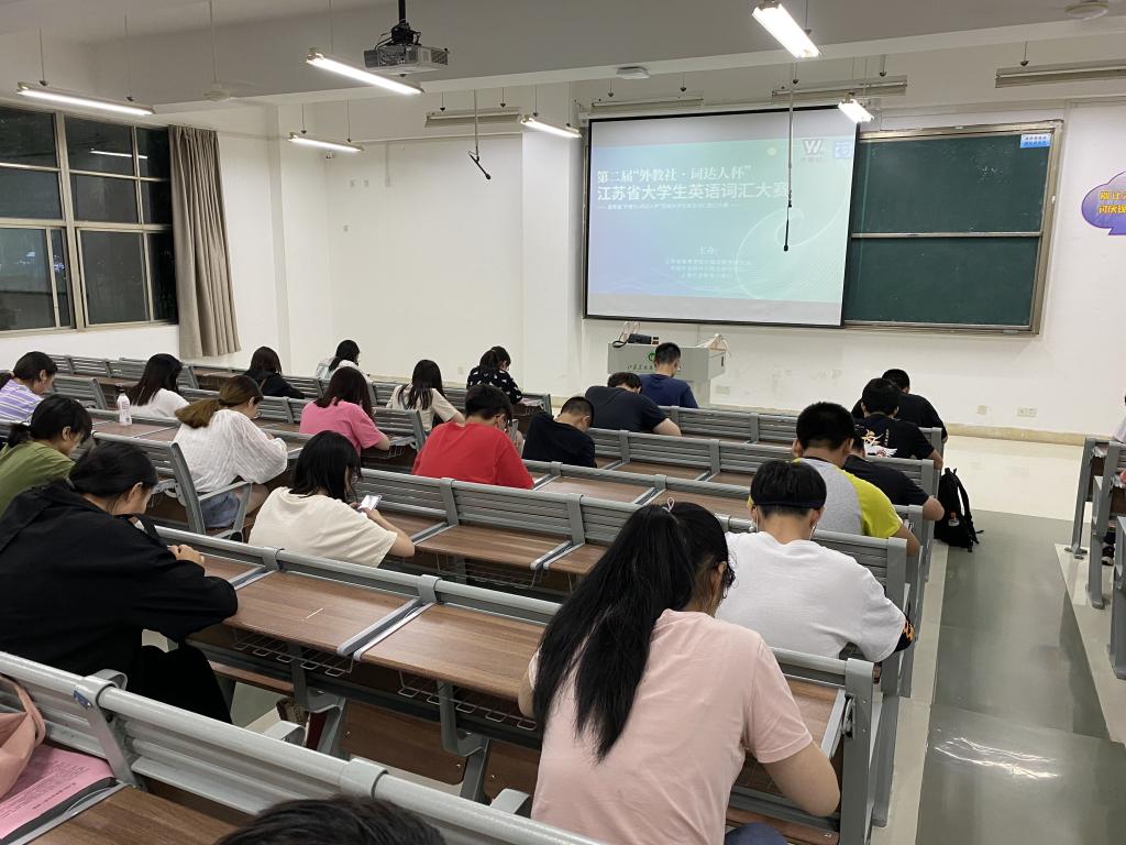 “外教社·词达人杯”江苏省大学生英语词汇大赛是全省普通高校本专科生学科竞赛。大赛极大地促进了校园英语学习的氛围,让同学们从生活中积累词汇用于生活。