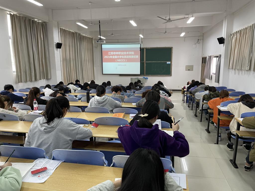 由中国英语外语教师协会(TEFL China)和高等学校大学外语教学研究会联合举办 2021年全国大学生英语竞赛 (2021 National English Competition for College Students, 简称NECCS),是全国唯一的大学生英语综合能力竞赛活动。本届大赛的初赛于2021年4月 24日在我院本校区和茅山校区如期举行,全院共计214人参加了比赛。