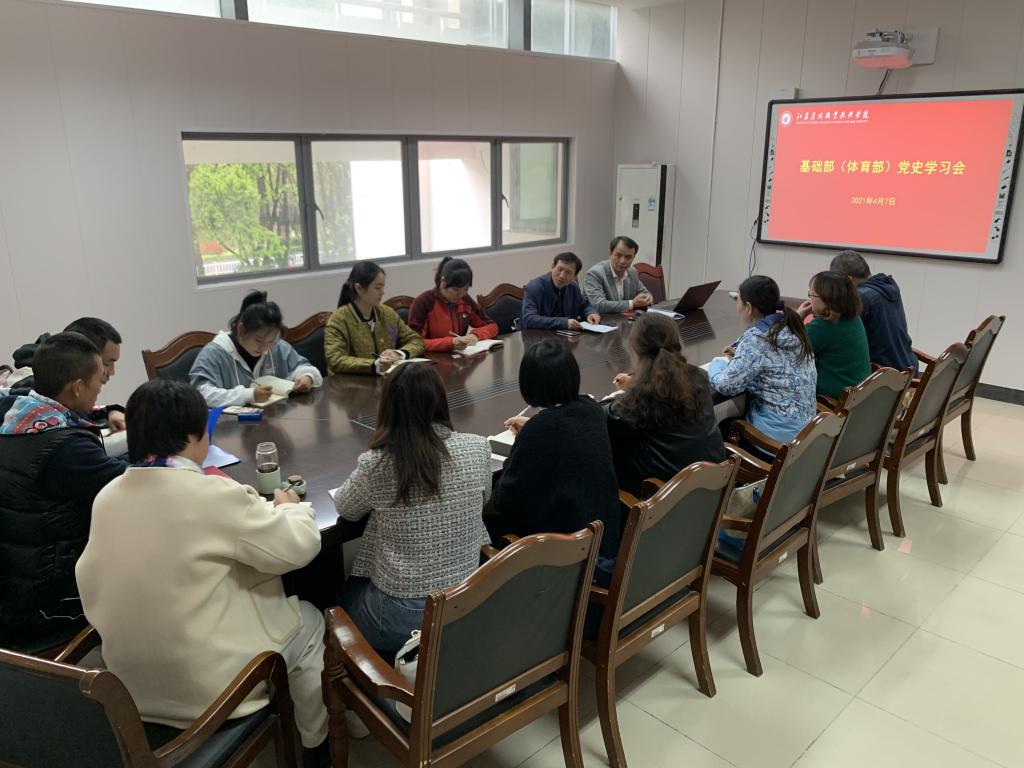 4月7日下午,基础部(体育部)在会议室召开党史学习专题会议,基础部(体育部)副书记高大响同志主持会议。