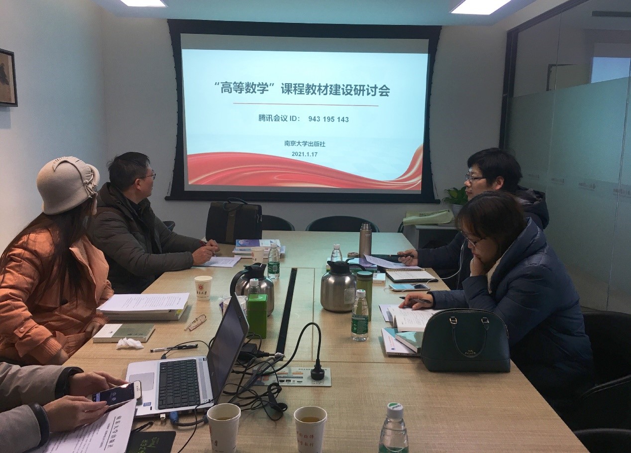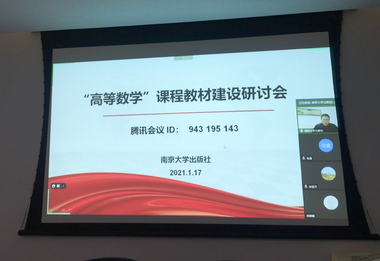 2021年1月17日上午,我院受邀参加了由南京大学出版社举办的“高等数学”课程教材建设研讨会。此次研讨会是为进一步推进和深化“高等数学”课程教学改革,提高课程骨干教师的教学方法和教学能力,优化《高等数学》课程教材特色与内容。参会的共有线上和线下8所兄弟院校的数学课程负责人及骨干教师。