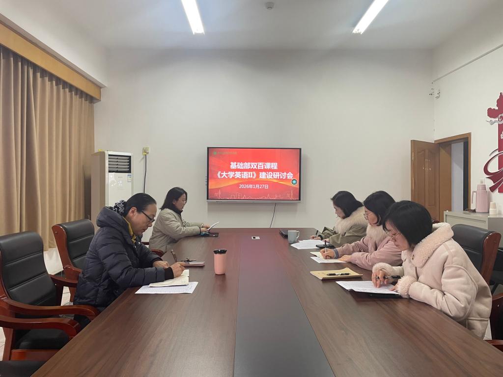 为持续推进“双百工程”在线精品课程提质升级,强化教学团队协同建设,2026年1月27日上午,基础部召开了双百课程《大学英语II》建设研讨会。会议聚焦课程建设现状、内容架构优化、寒假任务部署及AI工具融合等核心议题,凝聚建设共识,明确推进方向。
